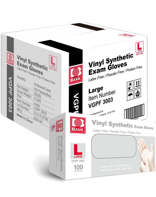 Basic Medical Clear Vinyl Exam Gloves - Latex-Free & Powder-Free, VGPF-3001, VGPF-3002, VGPF-3003, VGPF-3004 (Case of 1,000)