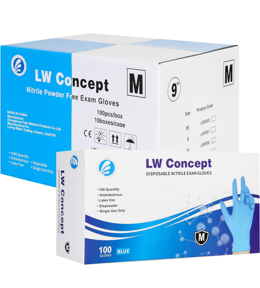 LW Concept 5 mil Blue Nitrile Gloves, Disposable Non-Sterile Latex-Free Powder-Free Glove (1000/case)