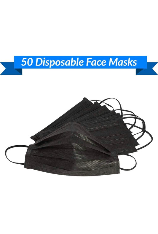 Dr Elson 50 Pack Disposable Face Masks, 3 Ply Filter Protection Black Disposable Face Masks